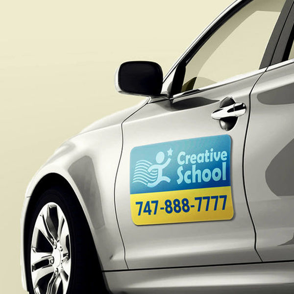 A thick magnet that can be placed on vehicle doors to add corporate branding.
